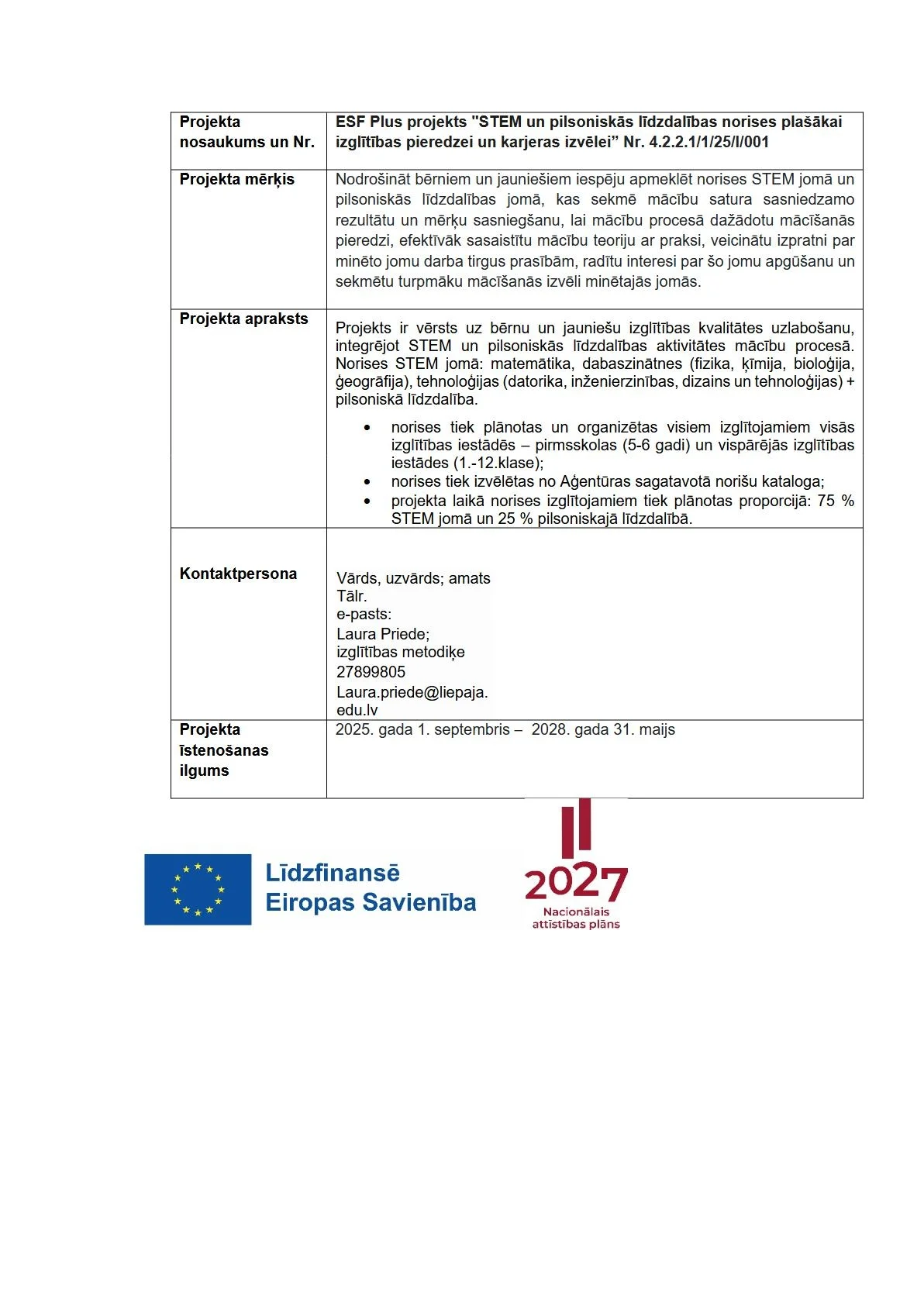 PII “Kriksītis” uzsāk dalību ESF+ projektā Nr.4.2.2.1/1/25/I/001 “STEM un pilsoniskās līdzdalības norises plašākai izglītības pieredzei un karjeras izvēlei”, kura mērķis ir nodrošināt bērniem iespēju piedalīties dažādās aktivitātēs zinātņu, tehnoloģiju, inženierzinātņu, matemātikas (STEM) un pilsoniskās līdzdalības jomās.